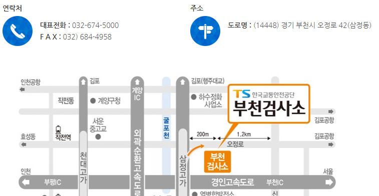 그리고 원하는 자동차 검사소를 조회한 뒤 이용할 수도 있는데 거주하는 지역명을 선택하면 해당 지역에 있는 검사소 위치와 상세 내역을 확인할 수 있습니다. 경기 지역의 부천 검사소를 확인해 보니 아래와 같이 세부 내용이 나오는 것을 볼 수 있네요.