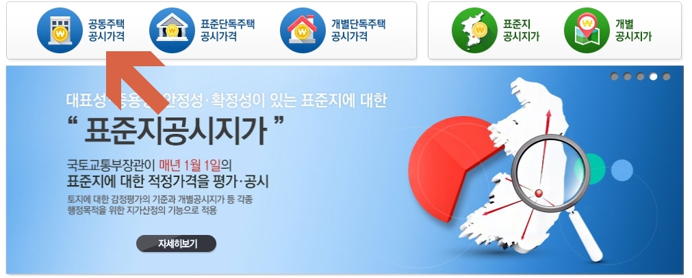 국토교통부에서는 별도의 사이트를 통해서 세종시 아파트 공시지가 조회를 할 수 있도록 지원하고 있는데요. 사이트에 접속하면 상단 메뉴에 공동주택 공시 가격이라는 것을 확인할 수 있는데 이를 선택해 주시면 됩니다.